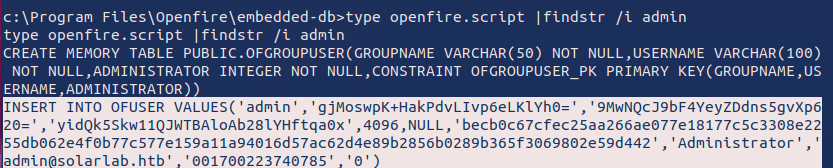 During this phase, I found an openfire.script file that contained a hashed password and a password key. Using a decryption function, I was able to decode the hash and retrieve the cleartext password for the administrator account of the ReportLab application.
