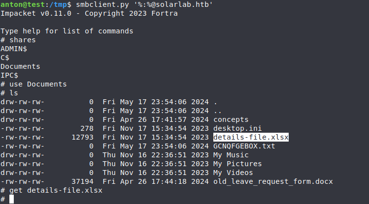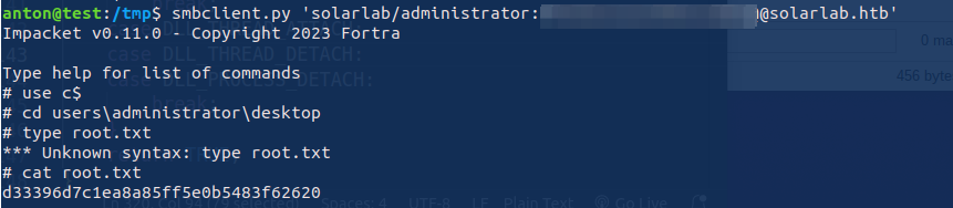 Hacking solarlab.htb was a comprehensive experience, covering a range of techniques from reconnaissance and enumeration to exploitation and privilege escalation. By methodically approaching each step and leveraging known vulnerabilities, I was able to achieve full system access. This journey highlights the importance of thoroughness and persistence in cybersecurity challenges.