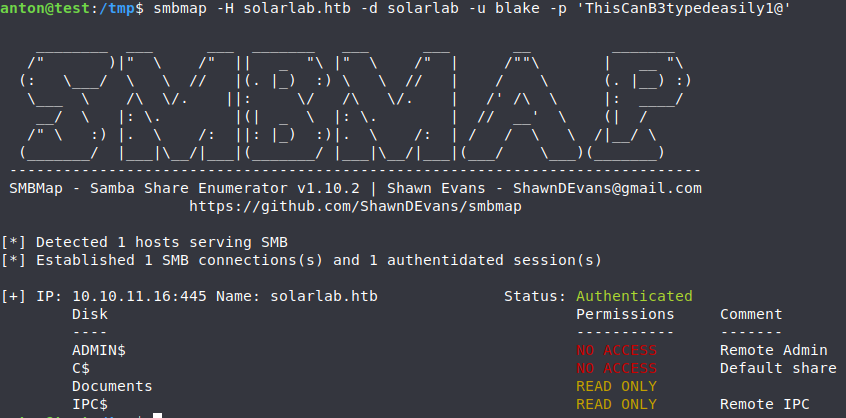 However, with the known cleartext password of user ‘blake‘ I was able to log in only through the port 445 smb.